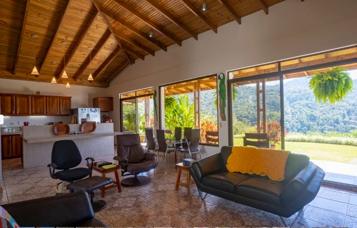 The home itself offers true luxury living in Costa Rica's highest mountains. There are 3 large bedrooms, all with en-suite bathrooms and views. The home is "villa-styled", in that all bedrooms are large enough to be converted into individual suites. There's a covered patio that spans the entire length of the home, offering a great space to contemplate the views of the primary forest with its dizzying degree of biological diversity.